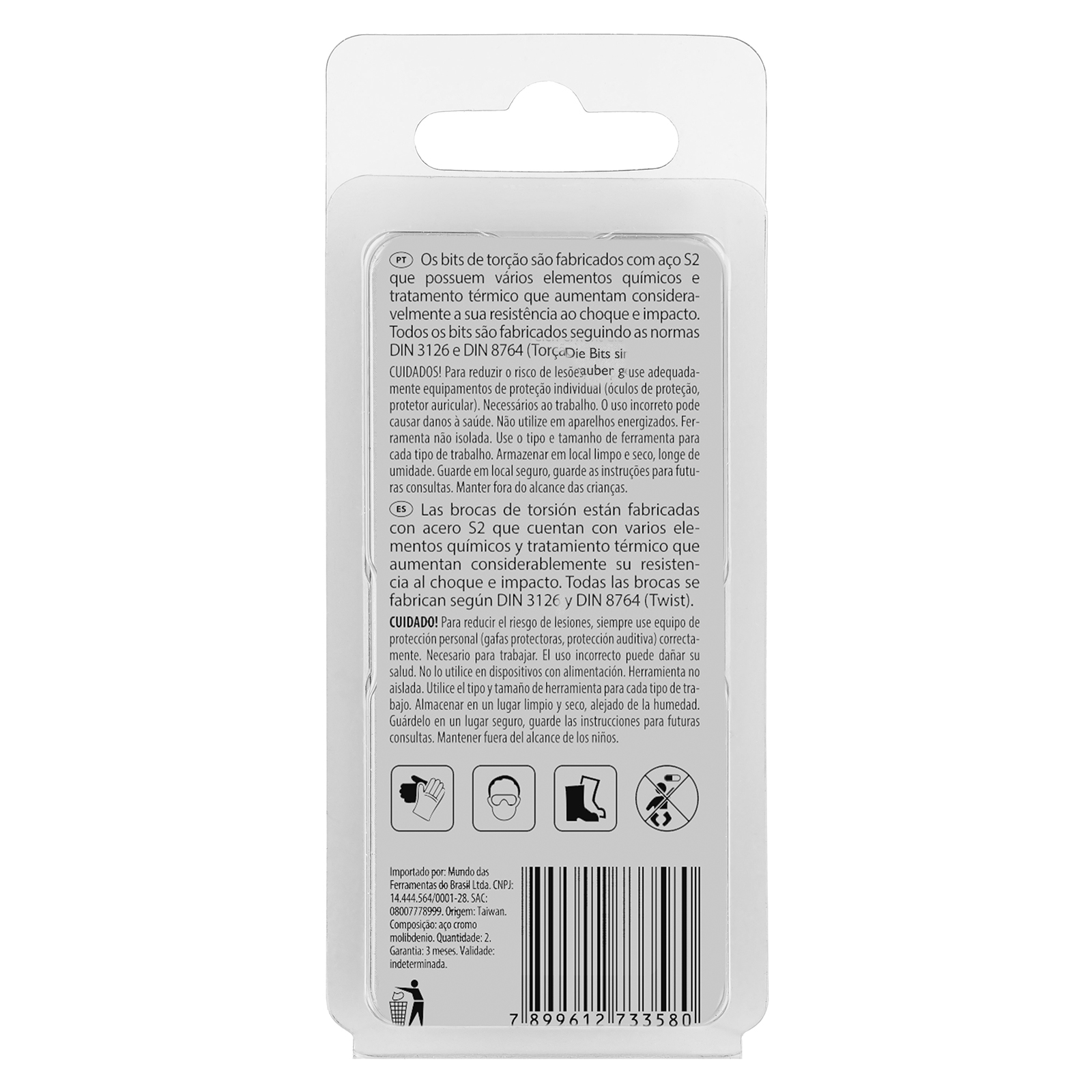 Armazenamento Conveniente: A embalagem em blister com gancho europeu oferece uma solução prática para o armazenamento e organização dos bits. Facilitando o acesso e permitindo que sejam convenientemente pendurados em um suporte, esta embalagem mantém a área de trabalho organizada e os bits sempre ao alcance.
