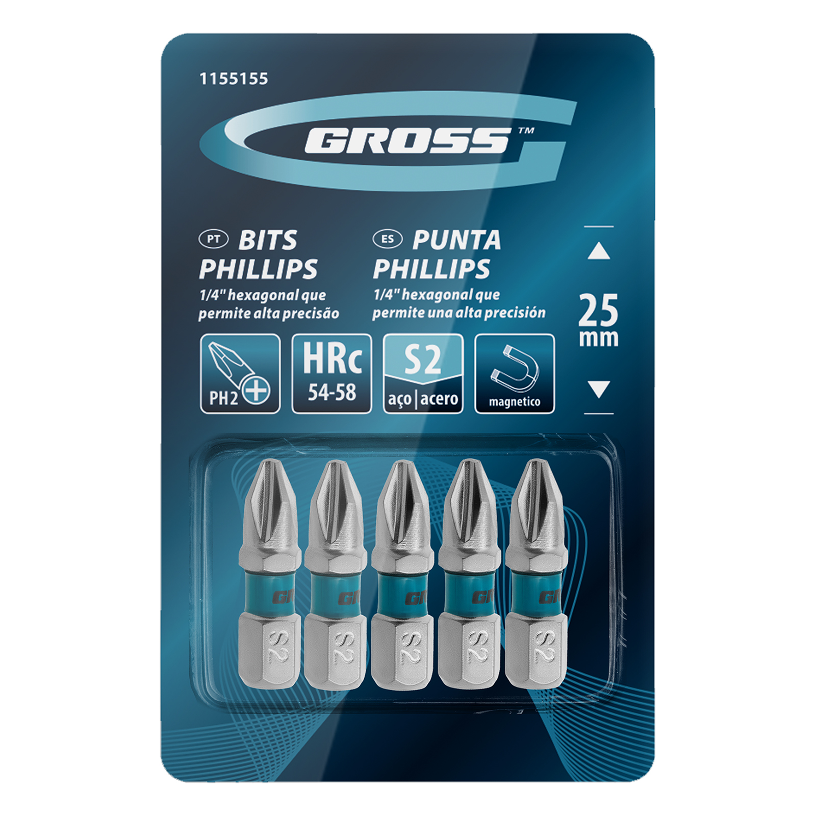 BITS PHILLIPS 1/4 POL, COMPRIMENTO 25 MM, PONTA 1/4 POL. PH2, ACO S2, 5 PCS GROSS