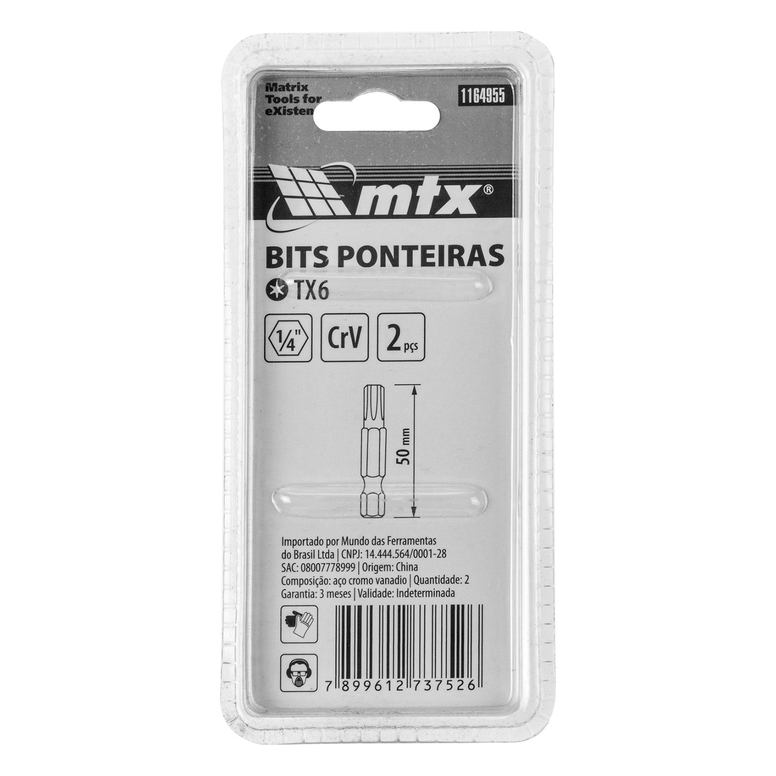 Bits Torx T6x50mm 2 peças - Mtx quantidade