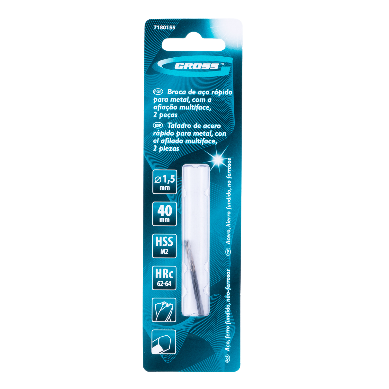 A Broca Aço Rápido para Metal Gross 7180155, fabricada com o resistente aço P6M5, vem em um conjunto de 2 peças com dimensões de 1,5 x 40 mm. Este modelo é especialmente projetado para a perfuração eficaz em uma ampla variedade de metais, incluindo alumínio, bronze macio, titânio, cobre e latão. Com um ângulo de afiação de 135 graus e classificada com a precisão A, esta broca eleva o padrão de qualidade nos trabalhos de montagem e montagem, garantindo resultados precisos e de alta qualidade.