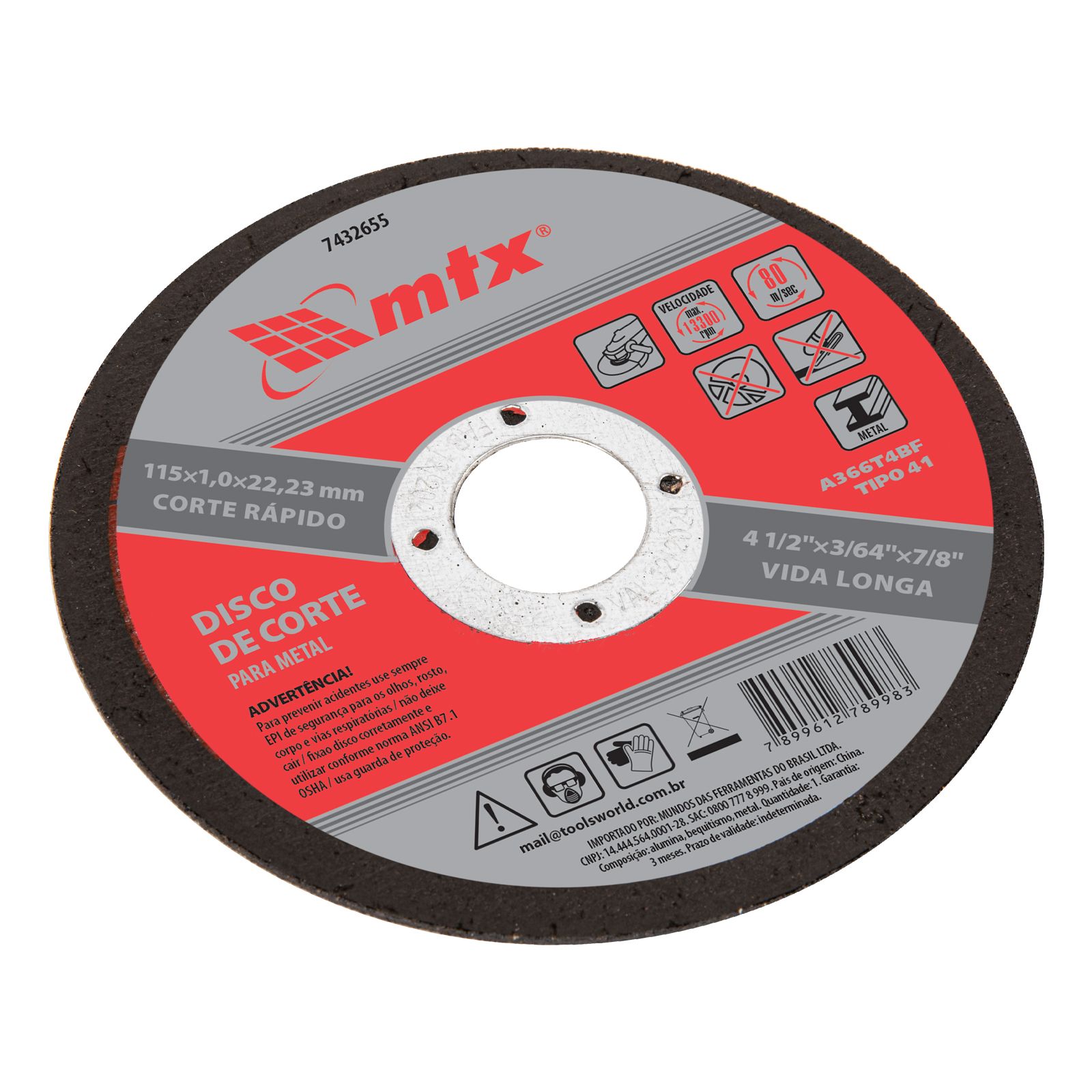 O Disco de Corte de Metal MTX 7432655 éuma ferramenta excepcionalmente projetada para atender às exigências de cortes precisos e eficientes em metal. Sua combinação de eficiência, resistência, funcionalidade, segurança e precisão o torna um componente essencial para qualquer oficina ou garagem. Seja para projetos de hobby, reparos domésticos ou aplicações profissionais, este disco de corte assegura um desempenho confiável e resultados de alta qualidade