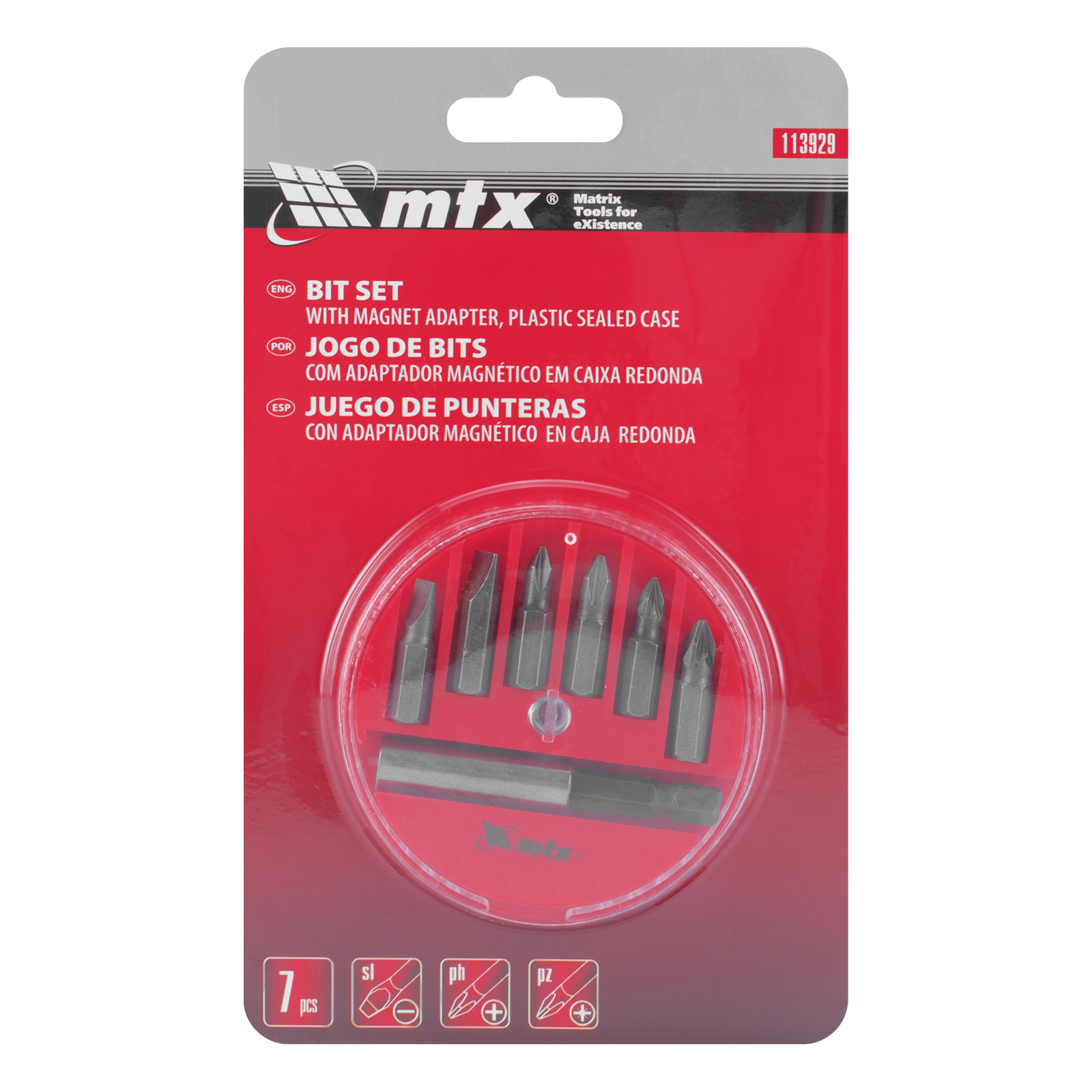 JOGO DE BITS ADAPTADOR MAGNETICO ACO 45X 7PCS MTX 113929
