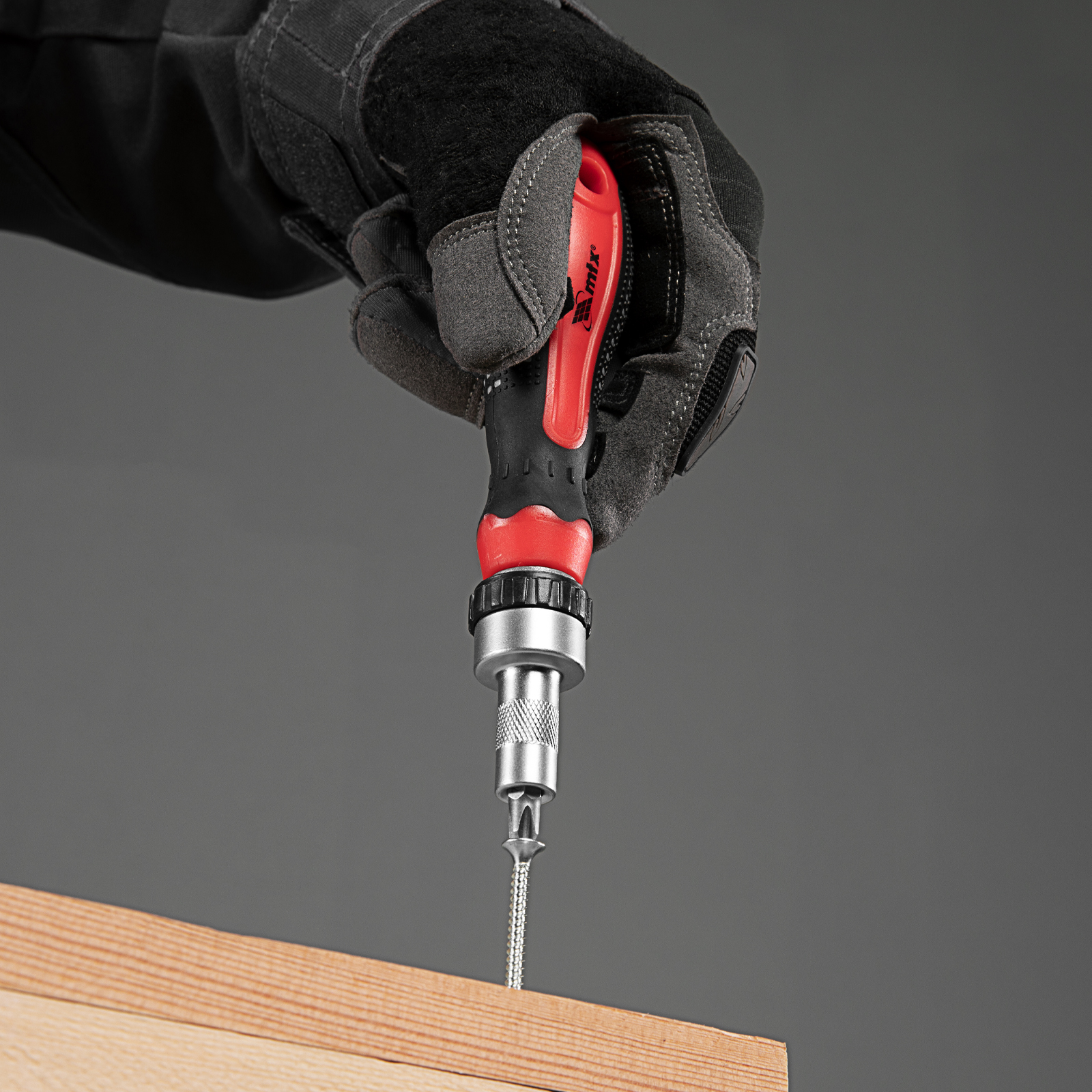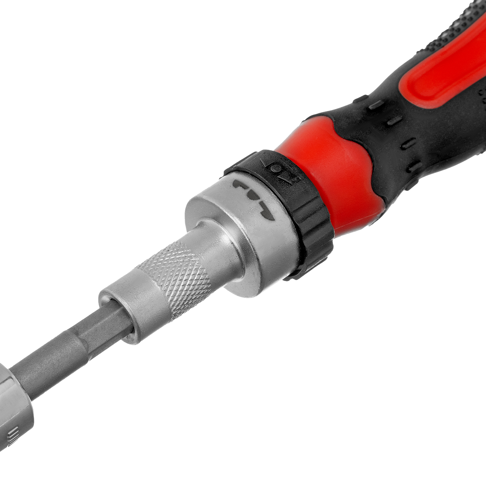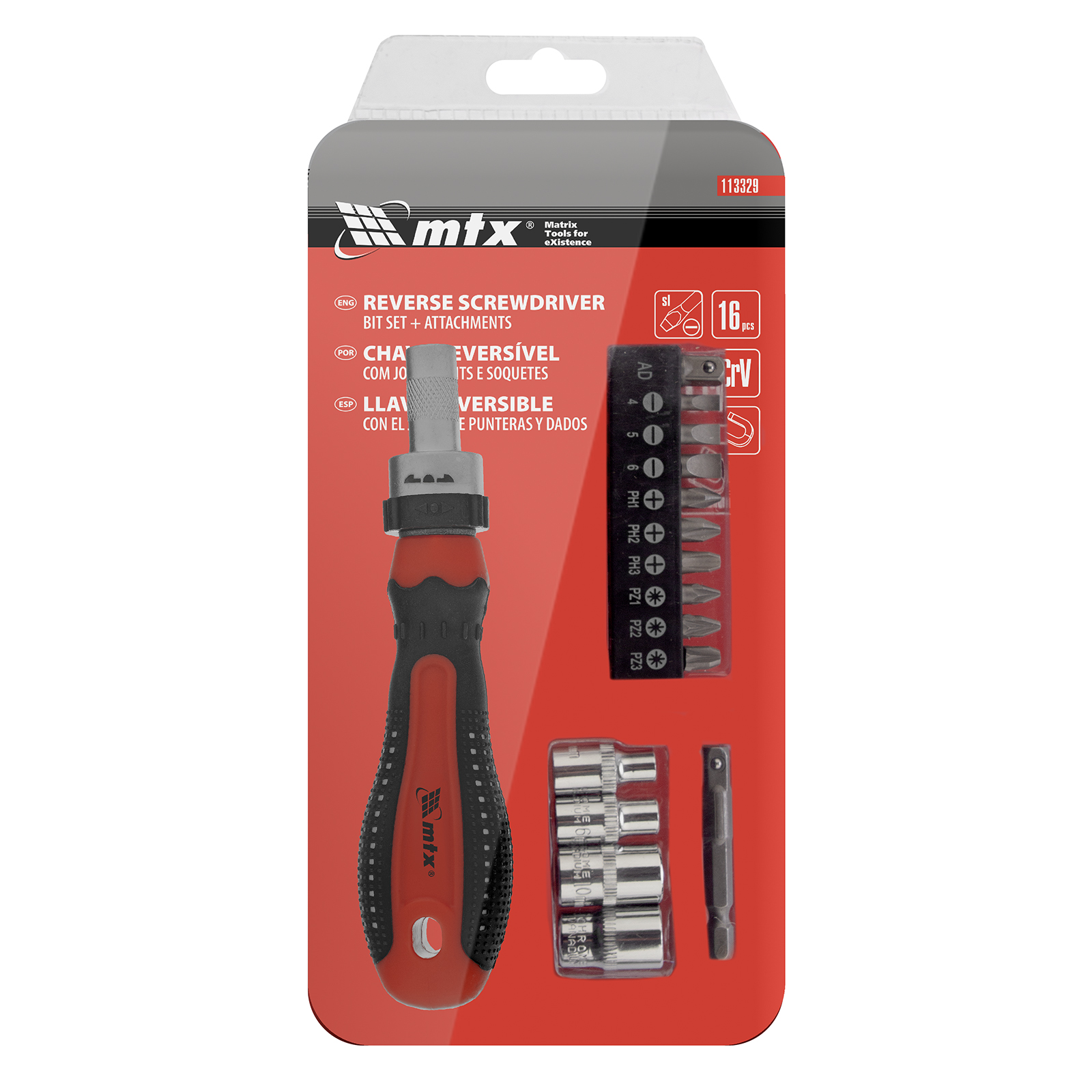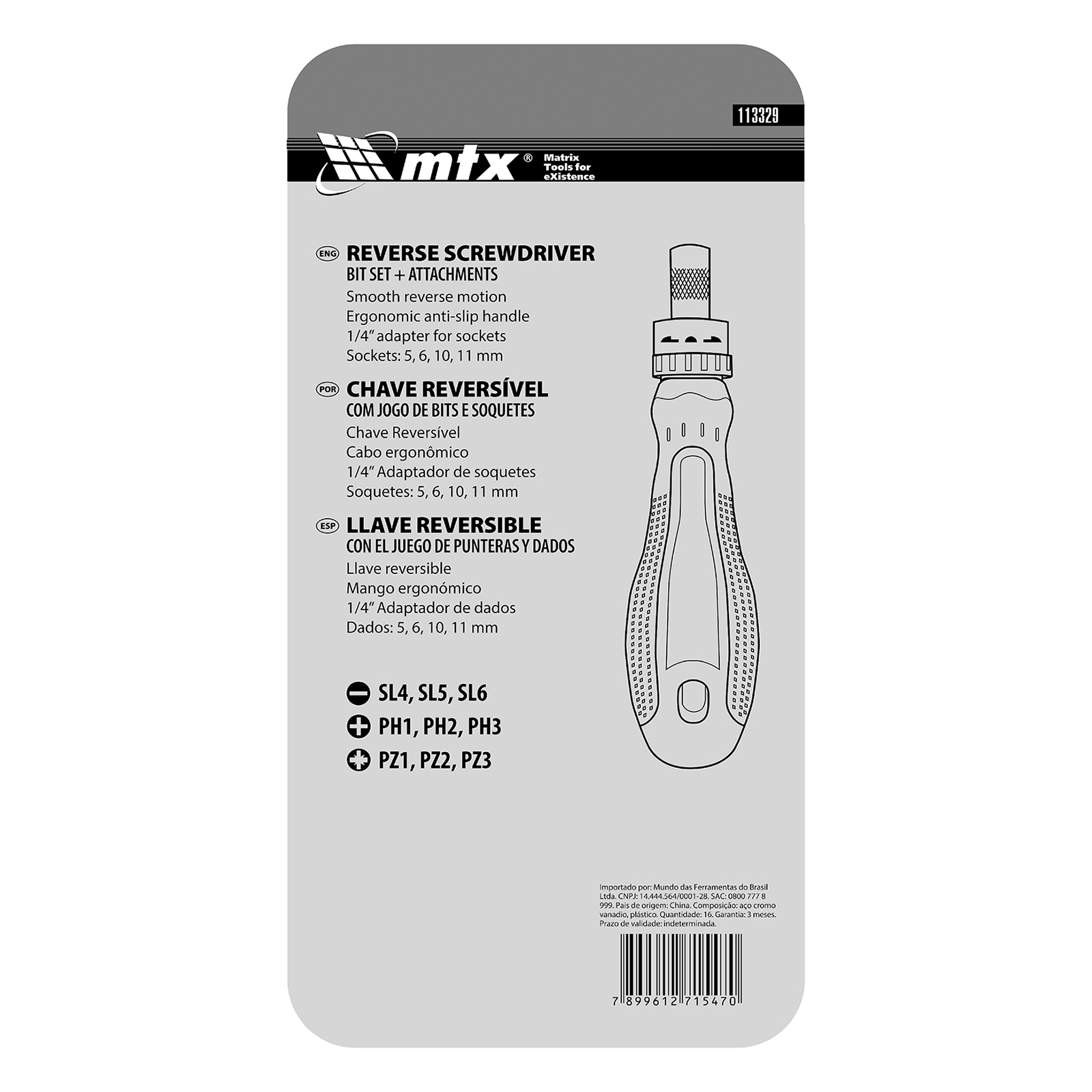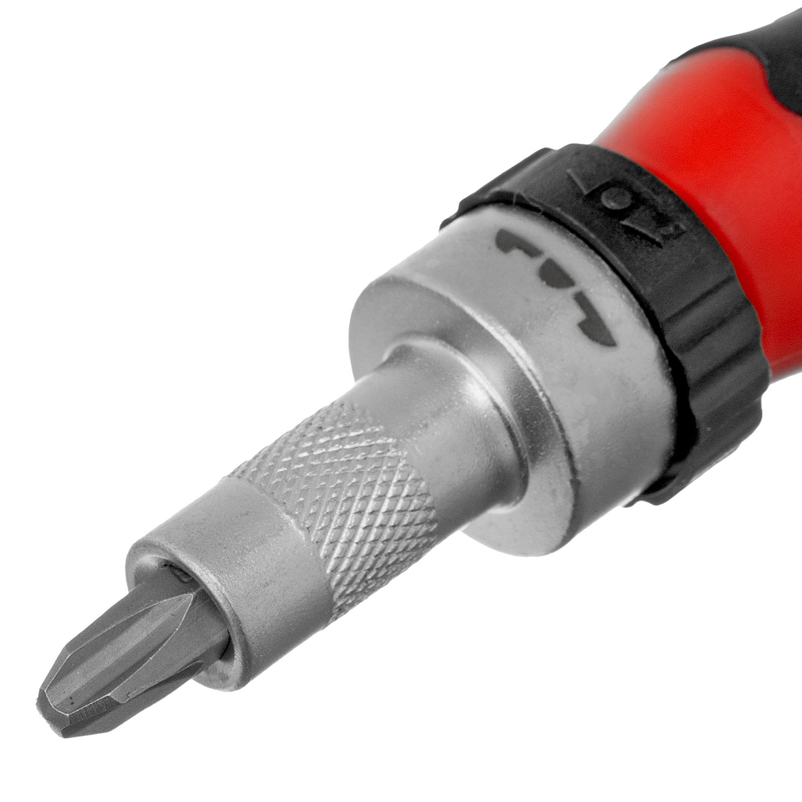 – Chave de fenda reversível com jogo de bicos e bits. Jogos e bits são feitos de aço cromo-vanádio da alta qualidade.